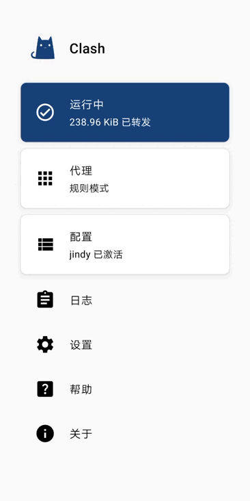 2️⃣回到 Clash 主界面,此时 配置 栏会提示 已激活 ,如图6所示。